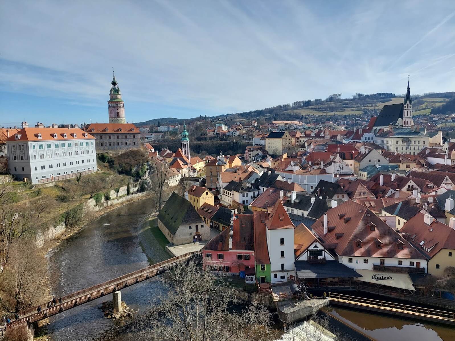 Aqui, o tempo parece parar, o rio Moldava abraça a cidade e o castelo domina a paisagem como se ainda estivéssemos na Idade Média.