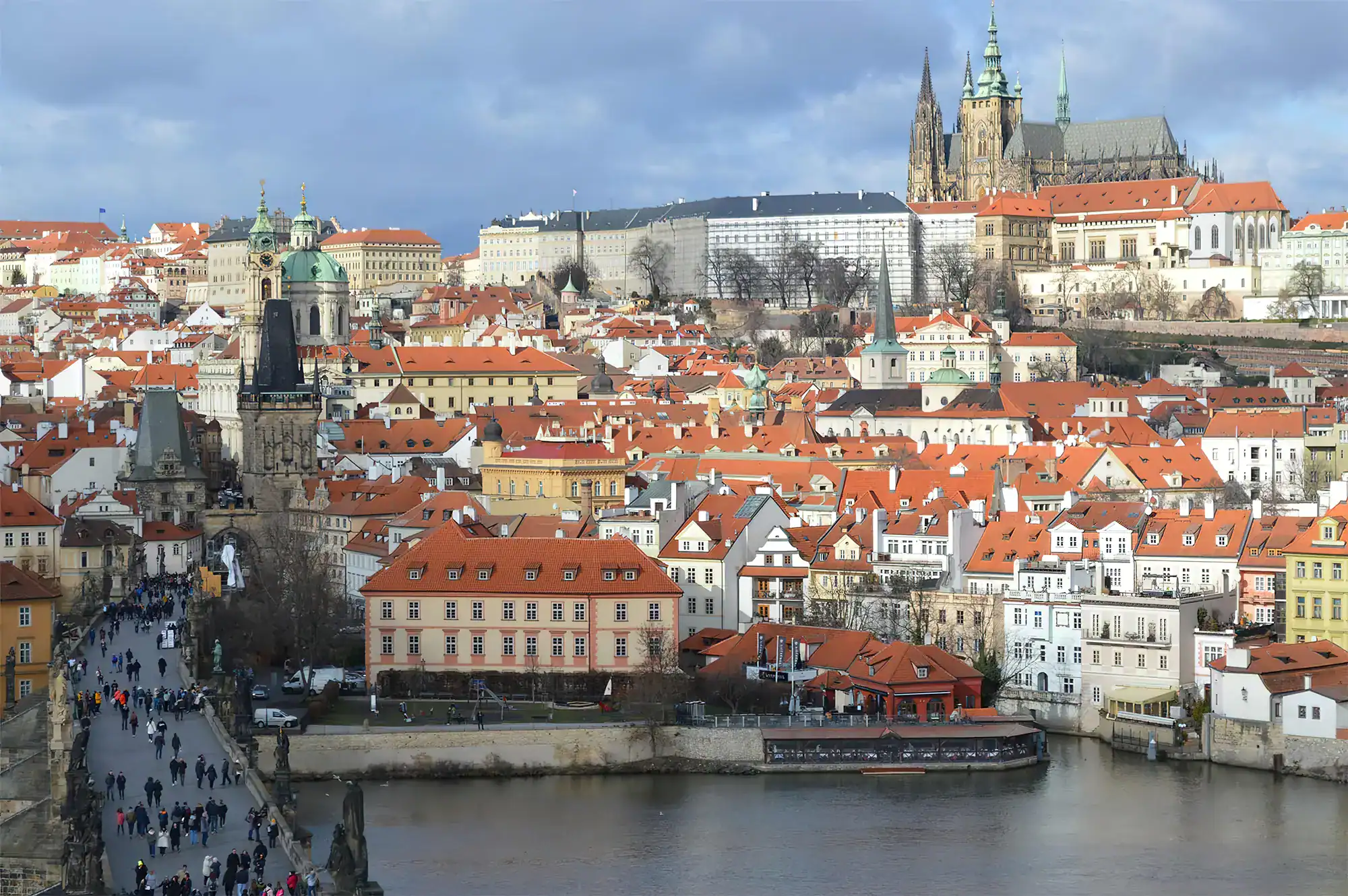 Atravessaremos o bairro de Hradčany, onde vivia sobretudo a nobreza e o clero, até o Castelo de Praga.
